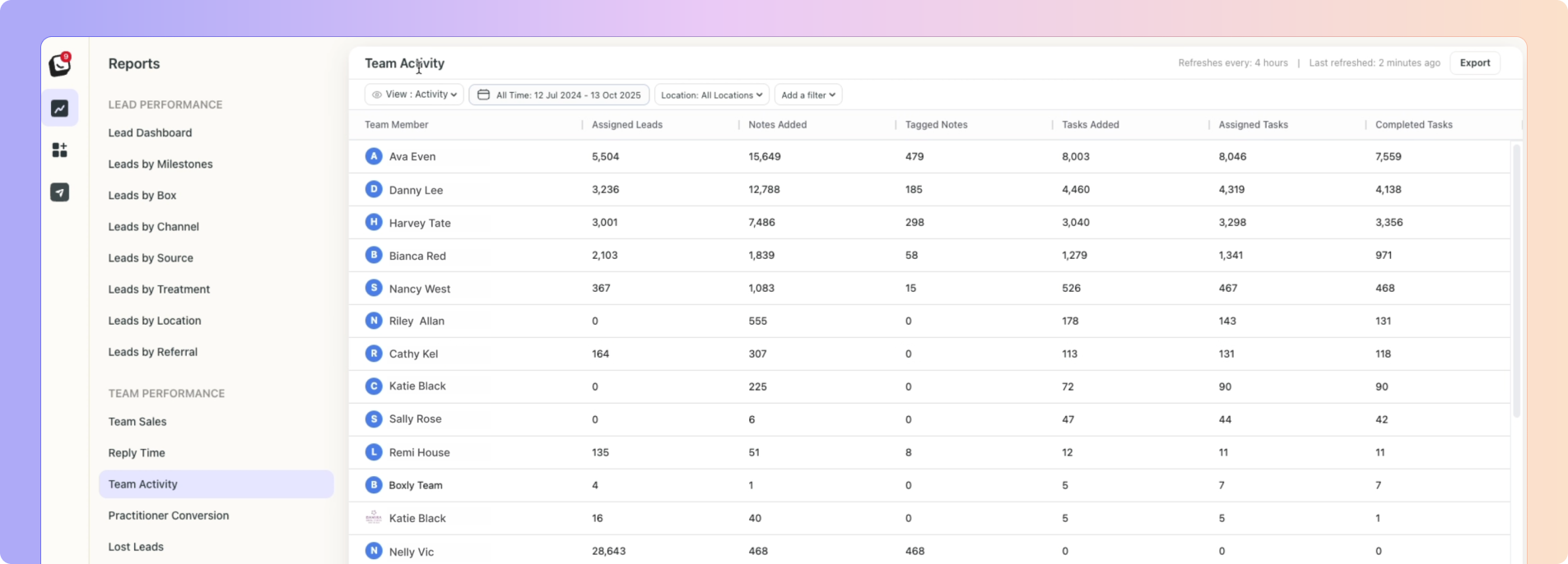 If Ava owns the lead but Danny sends the first message or adds a note, it will now count under Danny’s activity.