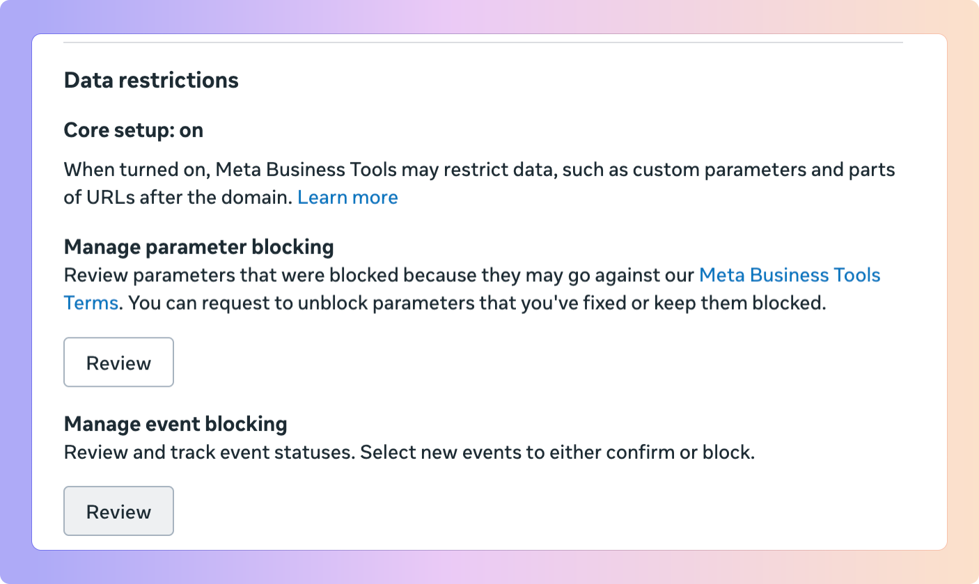In the Manage Custom Event Blocking section, click Review.