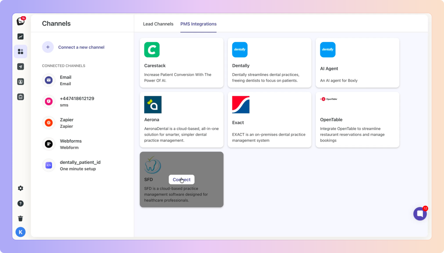 Connect your SFD (Software for Dentists) account with Boxly to create patients and appointments directly from Boxly.
