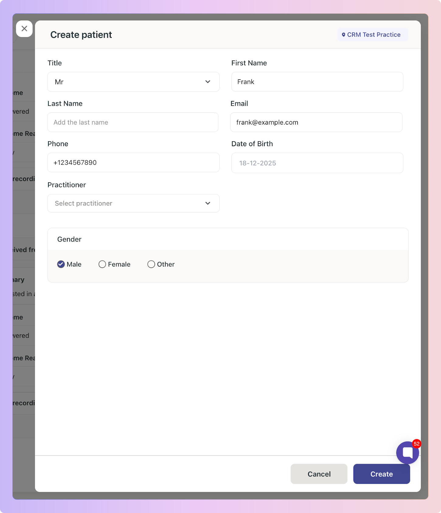 Patient and appointment actions will only be available once mappings are completed.Create patients in SFD directly from Boxly leads.