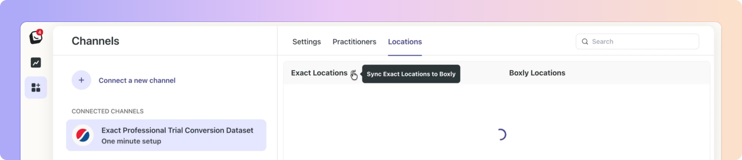 Go to Locations tab → Click the Sync button to bring in all locations, then map each Boxly location with the corresponding Exact location