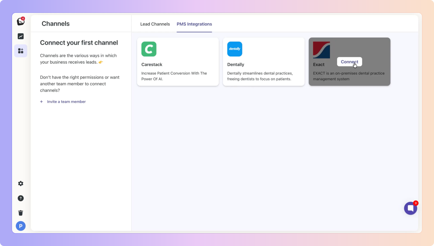 Patient and appointment actions will only be available once mappings are completed.Click on a lead you want to connect your Exact PMS too → Add your location label (which is mapped to Exact’s corresponding location tag)