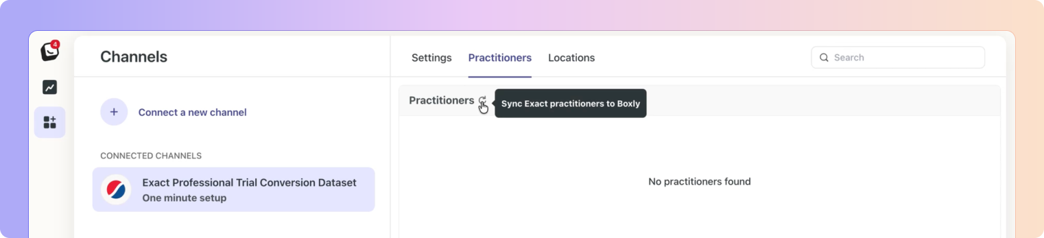 Go to Practitioner tab → Click the Sync button to bring in all practitioners, then map each Boxly practitioner with the corresponding Exact practitioner
