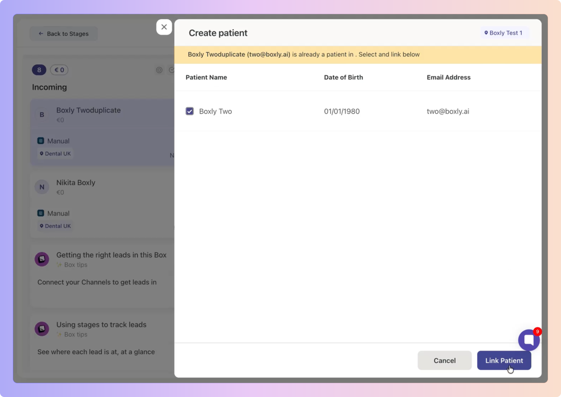 You can run this sync anytime to bring the latest appointment updates into Boxly.When syncing appointments, Boxly checks whether the patient already exists.