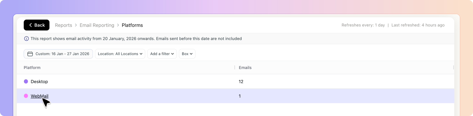Latest Reporting Update: 20/01/2025The Email Report includes all emails sent from Boxly, so you don’t need to check multiple areas.