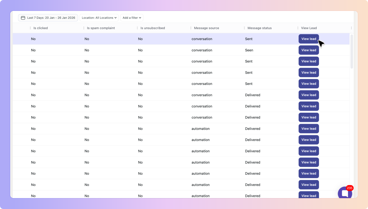 This makes it easy to move from high-level reporting to individual lead details.