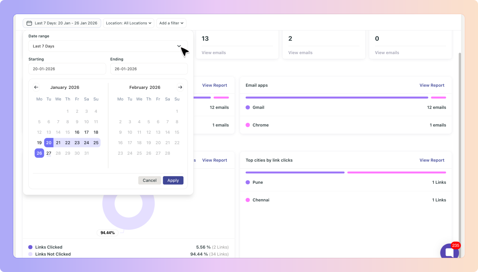 You’ll be taken to the Email Reporting dashboard, where you can explore activity for the selected date range.