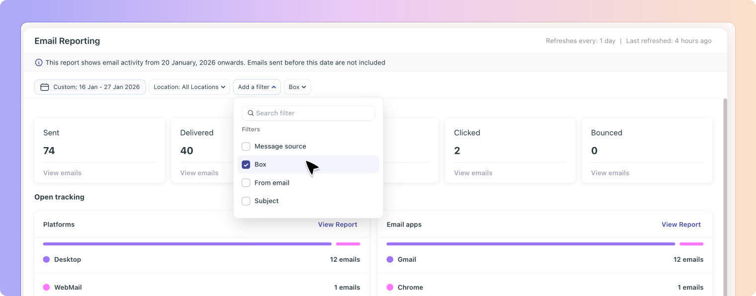 Email Reporting helps you understand what happens after you send emails from Boxly.