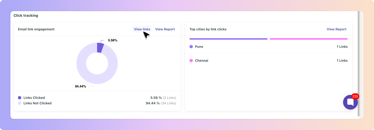 The Click Tracking section shows how recipients interact with links inside your emails.