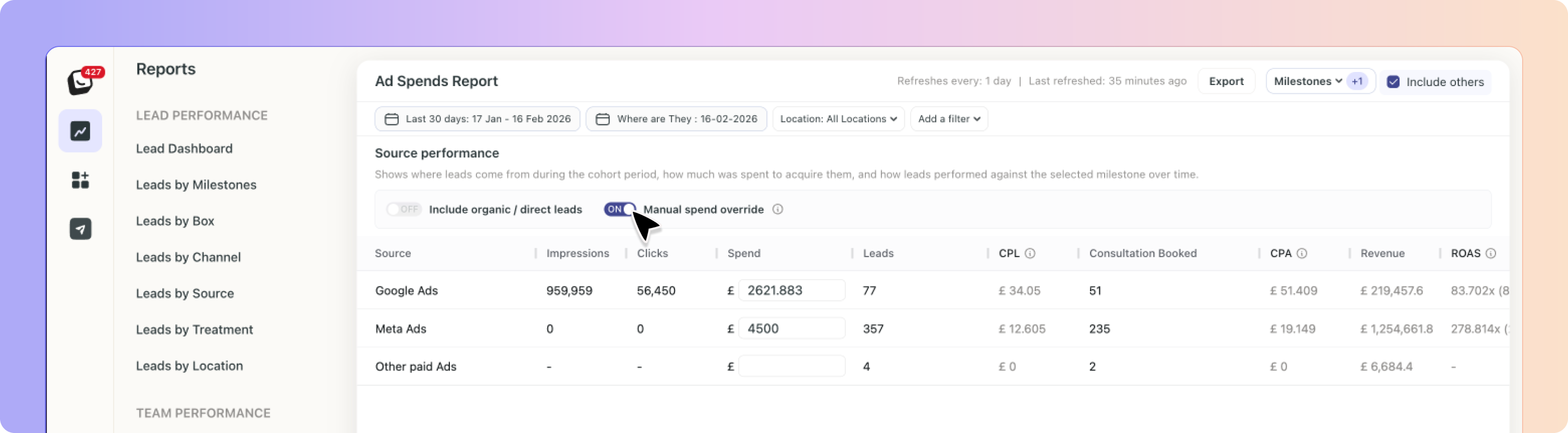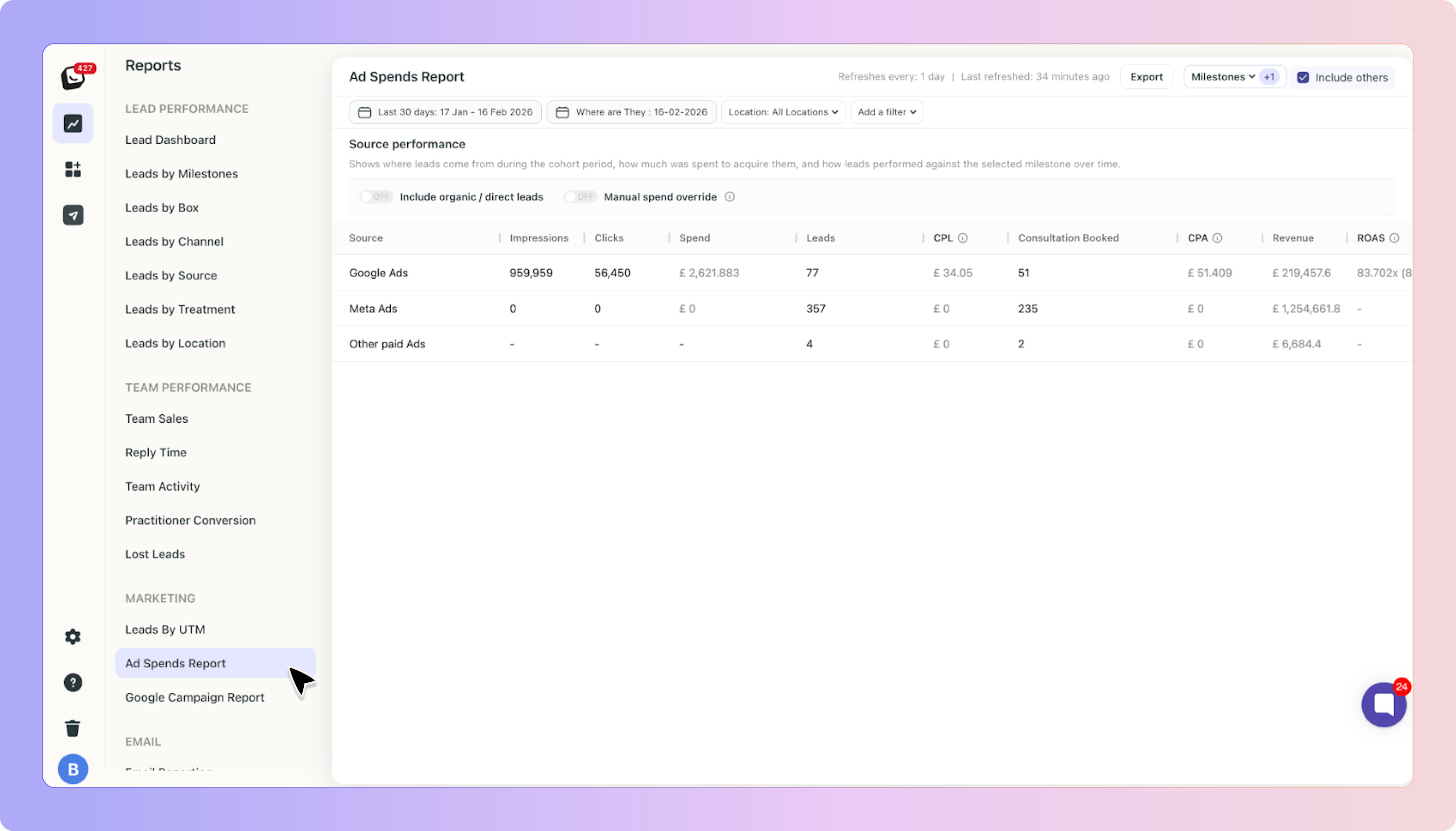 The Ad Spends Report gives you a complete financial view of your marketing performance.