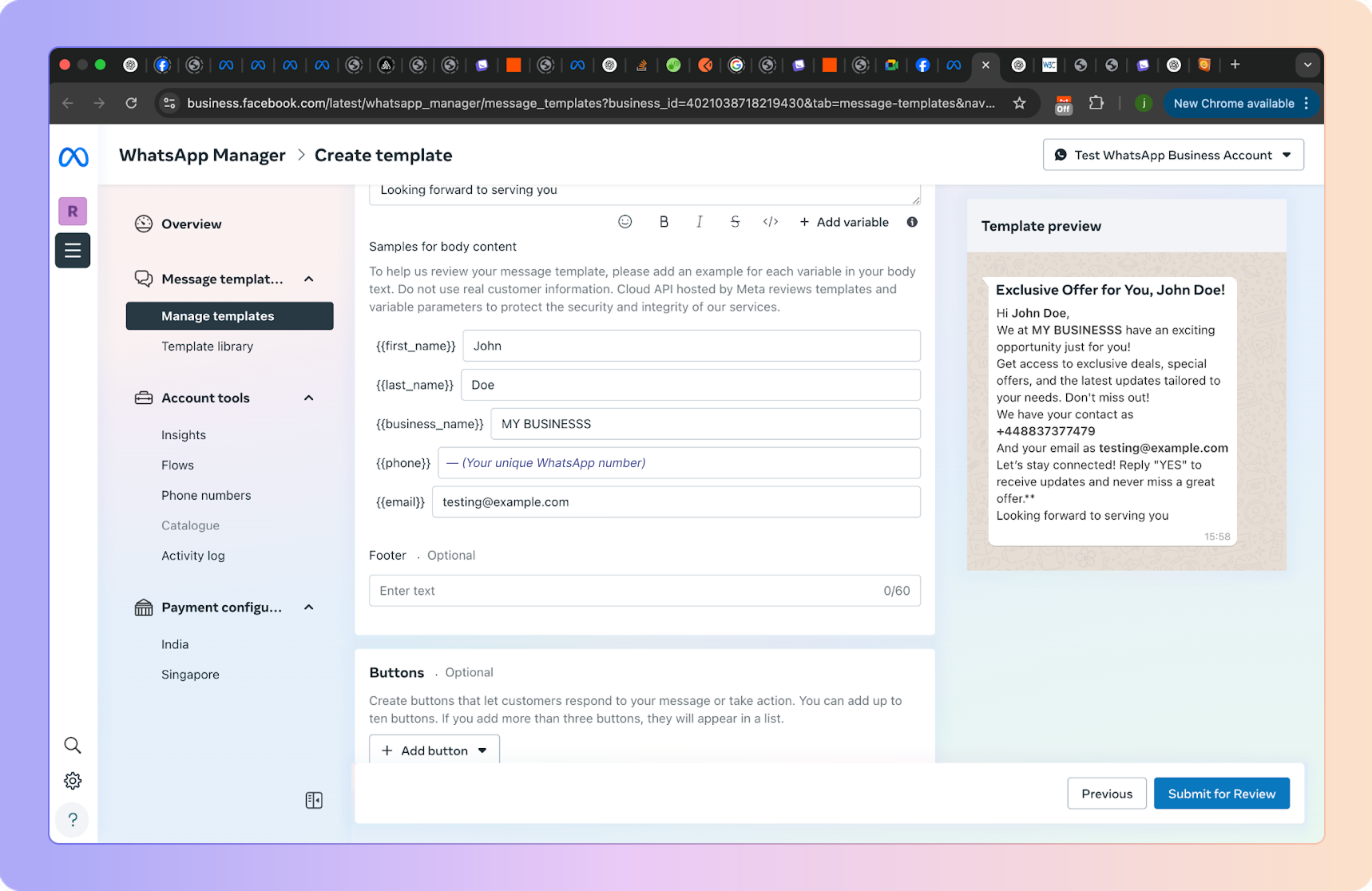 Please Note: Templates are reviewed by Meta before use to ensure policy compliance