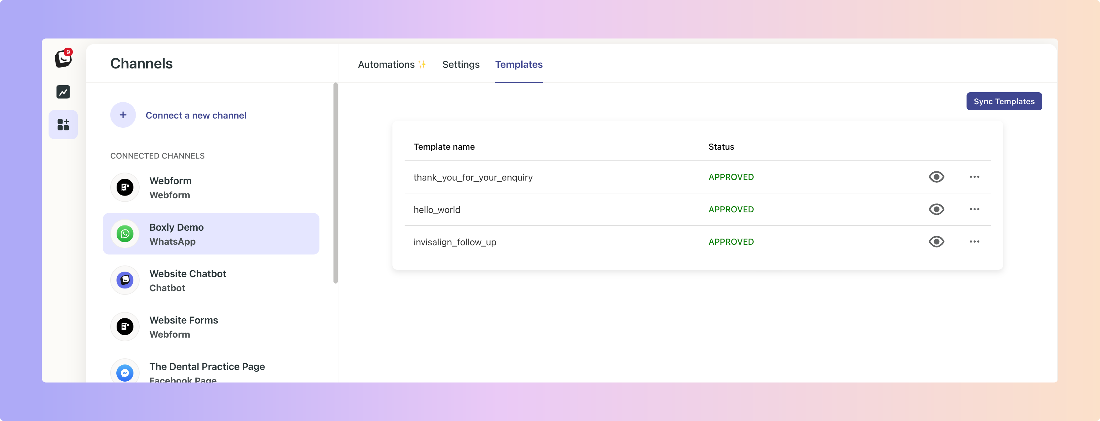 Click the "Sync Templates" button in the top right to bring all your created templates in Meta into Boxly.